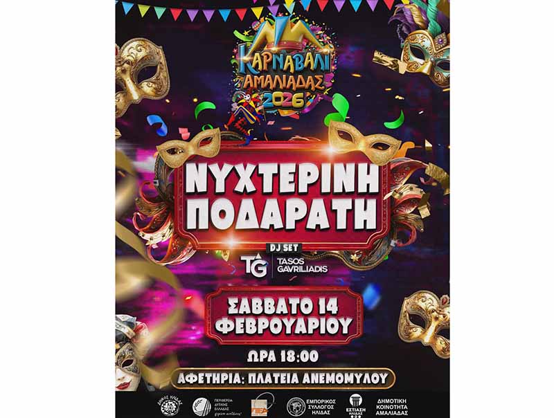 Φαντασμαγορική έναρξη για το «Καρναβάλι Αμαλιάδας 2026» από το Δήμο Ήλιδας με μια μεγάλη συναυλία του FY