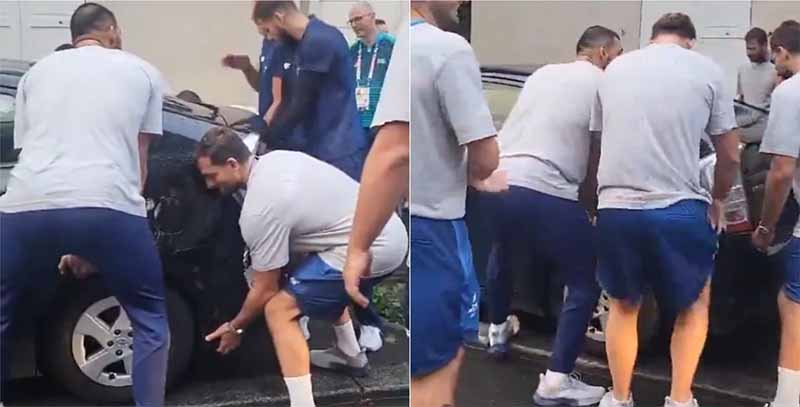 Ολυμπιακοί Αγώνες 2024: H Εθνική πόλο ανδρών σήκωσε... παρκαρισμένο ΙΧ για να περάσει το λεωφορείο της