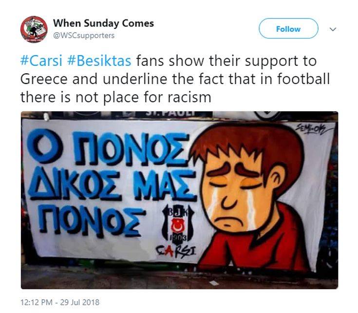 Οι οπαδοί της τουρκικής ομάδας Μπεσίκτας εξέφρασαν με ένα γκράφιτι γραμμένο στα ελληνικά την αλληλεγγύη τους στην Ελλάδα.