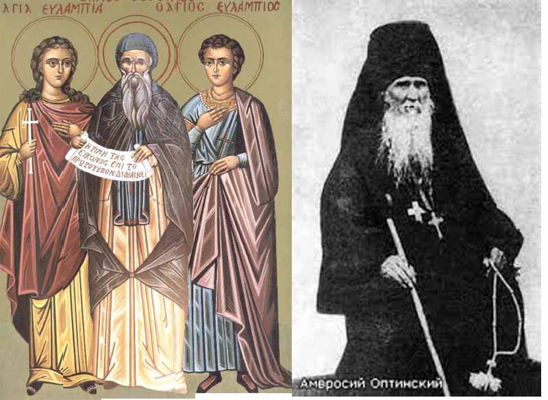 10 Οκτωβρίου - Άγιοι Ευλάμπιος και Ευλαμπία τα αδέλφια, Άγιοι Διακόσιοι Μάρτυρες, Όσιοι Θεόφιλος ο Ομολογητής και Λογγίνος ο Στυλίτης, Άγιος Βασιανός, Όσιος Αμβρόσιος της Όπτινα, Άγιος Paulinus Αρχιεπίσκοπος Υόρκης, Άγιος Ανδρέας της Τότμα, Άγιος Διονύσιος ο φιλόσοφος, Σύναξη των Αγίων της Βολυνίας και Άγιοι Είκοσι Έξι Οσιομάρτυρες Ζωγραφίτες