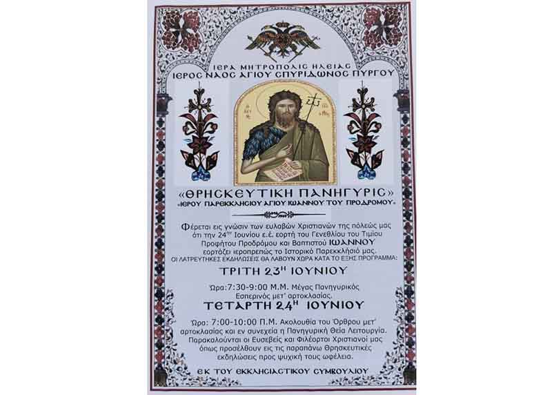 Το Θείο Βλάστημα της στείρας Ελισάβετ ο Άγιος Ιωάννης, εορτάστηκε με ιεροπρέπεια στον Πύργο.