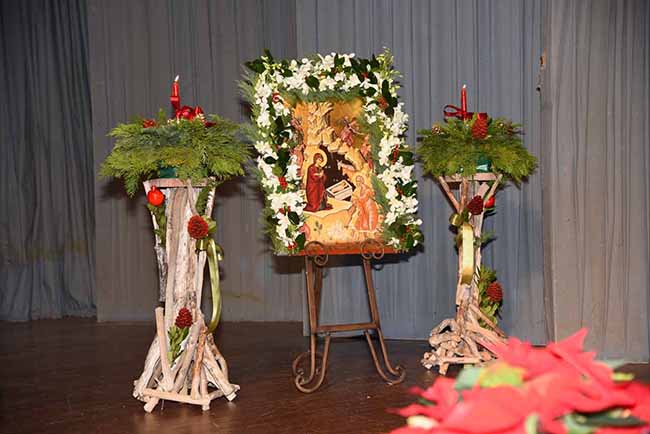 Την εκδήλωση άνοιξε ο Εφημέριος του Ναού, ο οποίος αναφέρθηκε στη εορτή των Χριστουγέννων και πως πρέπει να εορτάζονται αυτά από τους Έλληνες Ορθόδοξους Χριστιανούς τονίζοντας ότι: Η μεγάλη εορτή των Χριστουγέννων, μέσα στην καρδιά του χειμώνα βρίσκεται και πάλι ενώπιόν μας. Τα μέγιστα και ύψιστα γεγονότα της Θείας συγκαταβάσεως θα επιτρέψει και φέτος η φιλανθρωπία του Θεού να τα βιώσουμε μέσα στο λειτουργικό κλίμα της Αγίας Ορθόδοξης Εκκλησίας μας. Η Γέννησις του Κυρίου Ημών Ιησού Χριστού είναι μέγα και πανανθρώπινο γεγονός. Αφορά όλη την γην. Ενδιαφέρει όλους τους ανθρώπους όλων των γενεών.