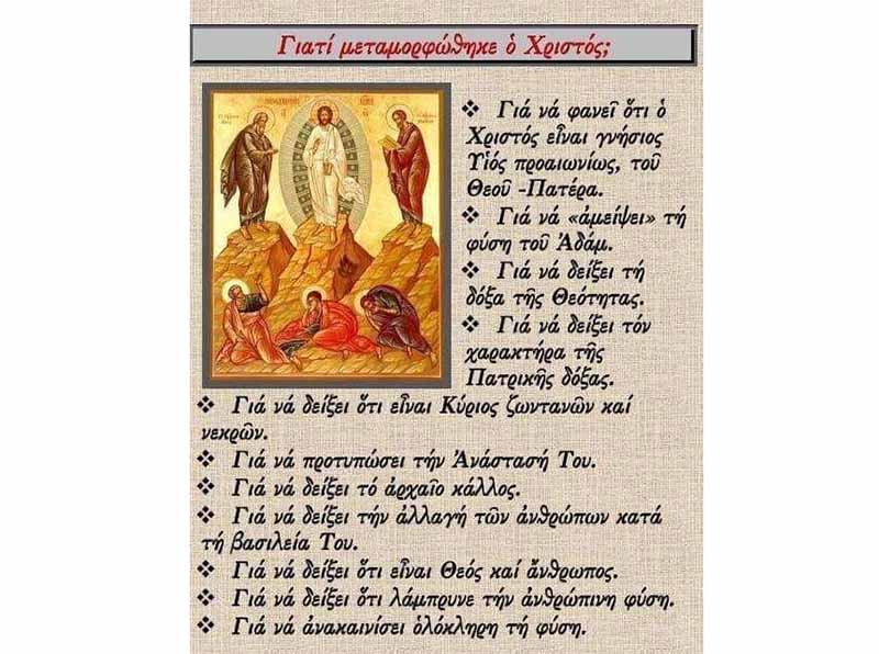 Αγαπητοί μας φίλοι και Χριστιανοί μας ευλογημένοι, κάθε χρόνο στις 6 Αυγούστου η Ορθόδοξη Εκκλησία μας εορτάζει την Μεγάλη Δεσποτική εορτή της Μεταμορφώσεως του Σωτήρος Χριστού, η οποία είναι μια από τις σημαντικές εορτές τόσο στην Θεολογία της Εκκλησίας,, όσο και στην ζωή των Χριστιανών. Aυτή η μεγάλη Δεσποτική εορτή της Μεταμορφώσεως του Κυρίου μας αγαπητοί, μας δίνει την ωραία ευκαιρία και την αφορμή να ενθυμηθούμε για μία ακόμη φορά, εκείνο το θαυμαστό και ένδοξο γεγονός το οποίο συνέβη στο όρος Θαβώρ.
