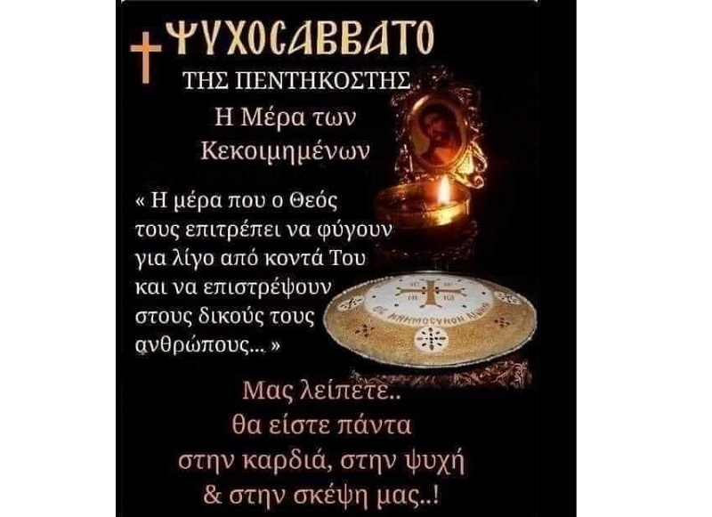22 Ιουνίου 2024 Ψυχοσάββατο προ της Πεντηκοστής (Ρουσαλιών)