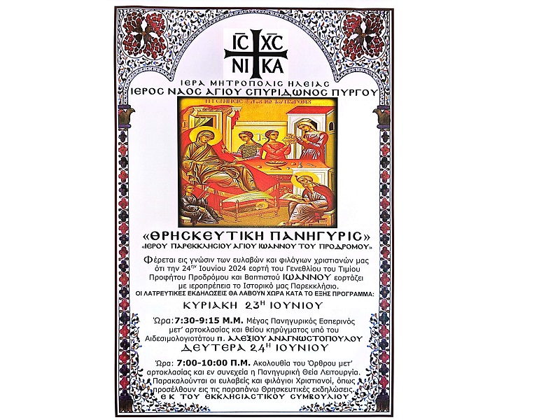 Δευτέρα 24 Ιουνίου το Γενέθλιον του Αγίου Ενδόξου Προφήτου Προδρόμου και Βαπτιστού Ιωάννου