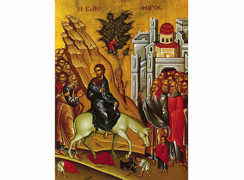 …Τη επαύριον όχλος πολύς ο ελθών εις την εορτήν, ακούσαντες ότι έρχεται ο Ιησούς εις Ιεροσόλυμα, έλαβον τα βάϊα των φοινίκων και εξήλθον εις απάντησιν αυτώ και έκραζον.