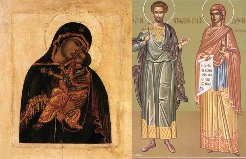 19 Μαρτίου - Άγιοι Χρύσανθος και Δαρεία, Άγιοι Κλαύδιος ο Τριβούνος, Ιλαρία η σύζυγος του και τα παιδιά τους Ιάσων και Μαύρος, Άγιος Παγχάριος, Άγιοι Διόδωρος ο πρεσβύτερος και Μαριανός ο διάκονος, Άγιος Δημήτριος ο Τορναράς, Οσία Μαρία η πριγκίπισσα, Όσιος Ιννοκέντιος ο Θαυματουργός, Σύναξη της Υπεραγίας Θεοτόκου της Τρυφερής, εν Σμόλενσκ Ρωσίας