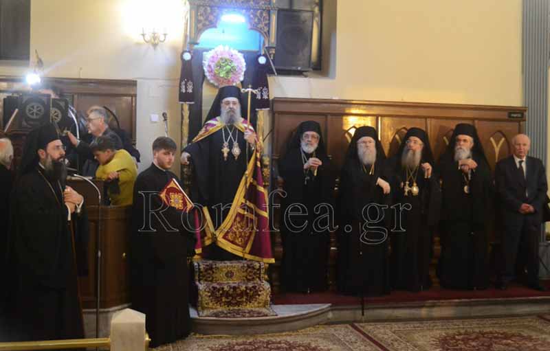 Οι λατρευτικές εκδηλώσεις προς τιμήν του πολιούχου της πόλεως ξεκίνησαν με τον μέγα πολυαρχιερατικό πανηγυρικό εσπερινό στον Ιερό Ναό της Αγίας Κυριακής.