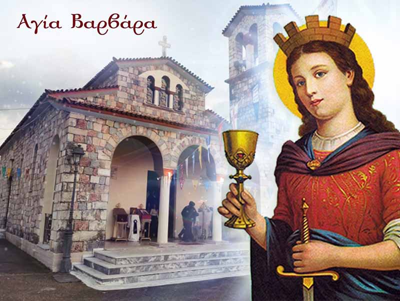 Η Ορθόδοξη Εκκλησία μας τιμά αγαπητοί μας φίλοι και Χριστιανοί μας, στις 4 Δεκεμβρίου και εορτάζει την μνήμη της Μεγαλομάρτυρος Αγίας Βαρβάρας της θαυματουργού, η οποία έζησε το τέλος του 3ου αιώνα και αρχές του 4ου στην Ηλιούπολη, πόλη της Κοίλης Συρίας, κατά τους χρόνους του Αυτοκράτορος Μαξιμιανού (286-305) μ.Χ. και ήταν κόρη του Διόσκουρου.