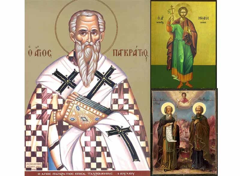 9 Ιουλίου - Άγιος Παγκράτιος Ιερομάρτυρας επίσκοπος Ταυρομενίας, Άγιος Μιχαήλ Πακνανάς ο κηπουρός, Όσιος Φώτιος κτήτορας της Μονής Ακαπνίου στη Θεσσαλονίκη, Άγιοι Ανδρέας και Πρόβος, Ανάμνηση των Εγκαινίων του Ναού της Υπεραγίας Θεοτόκου εν τη Πηγή, Όσιοι Διονύσιος «ο ρήτωρ» και ο υποτακτικός του Άγιος Μητροφάνης ο πνευματικός και Άγιος Μεθόδιος ο νέος Ιερομάρτυρας
