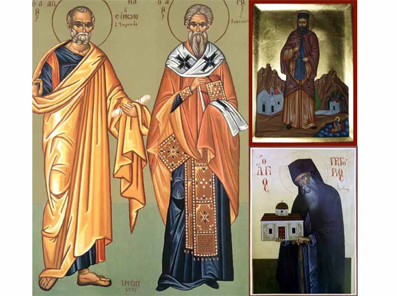 16 Απριλίου - Μεγάλη Τετάρτη - Της αλειψάσης τον Κύριον μύρω, Αγίες Αγάπη, Ειρήνη και Χιονία, Άγιος Μιχαήλ ο Βουρλιώτης, Όσιος Αμφιλόχιος Μακρής της Ιεράς Νήσου Πάτμου, Άγιοι Φήλιξ ο επίσκοπος, Ιανουάριος ο πρεσβύτερος, Φορτουνάτος και Σεπτεμίνος, Άγιος Λεωνίδης και οι Αγίες Χάρισσα, Νίκη, Γαλήνη, Καλλίδα, Νουνεχία, Βασίλισσα και Θεοδώρα, Αγία Ειρήνη, Άγιος Χριστόφορος ο Οσιομάρτυρας, Άγιοι Αγάθων, Ευτυχία, Κασία και Φιλίππα οι Ομολογητές, Οσία Θεοδώρα η πριγκίπισσα, Άγιος Ιωάννης ο διά Χριστόν σαλός, Άγιος Αμβρόσιος ο Ομολογητής Πατριάρχης Γεωργίας, Σύναξη της Υπεραγίας Θεοτόκου της Γεθσημανή εν Ρωσία και Σύναξη της Υπεραγίας Θεοτόκου του Ταμπώφ εν Ρωσία
