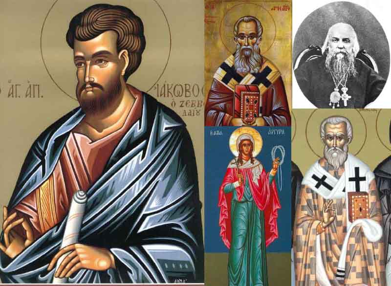 30 Απριλίου - Άγιος Ιάκωβος ο Απόστολος αδελφός Ιωάννου του Θεολόγου, Όσιος Κλήμης ο υμνογράφος, Άγιος Δονάτος επίσκοπος Ευροίας Ηπείρου, Ανακομιδή των Ιερών Λειψάνων της Αγίας Αργυρής, Άγιος Μάξιμος, Εύρεση των ιερών λειψάνων του Αγίου Βασιλέως επισκόπου Αμασείας, Ανακομιδή των Ιερών Λειψάνων του Αγίου Θεοδώρου Νεομάρτυρα του Βυζαντίου, Άγιος Erconwald επίσκοπος Λονδίνου, Άγιος Ιγνάτιος Επίσκοπος Σταυρουπόλεως, Άγιοι Ισίδωρος, Ηλίας και Παύλος οι Μάρτυρες, Άγιος Αφροδίσιος ο Ιερομάρτυρας και οι συν αυτώ τριάντα Μάρτυρες, Ανακομιδή Ιερών λειψάνων του Αγίου Νικήτα Αρχιεπισκόπου Νόβγκοροντ και Άγιος Σίμων Μητροπολίτης Μόσχας