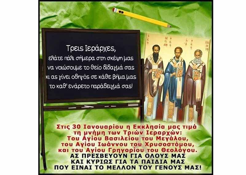 Αφιέρωμα στους Αγίους των γραμμάτων, τους τρεις ζωντανούς προστάτες της παιδείας μας