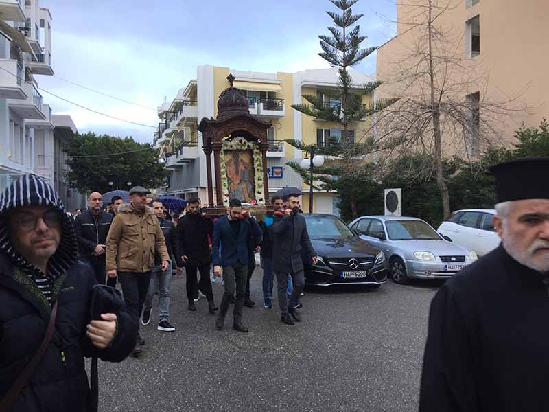 Με την ευλάβεια και την ιδιαίτερη ιεροπρέπεια που αρμόζει στον Προστάτη και Πολιούχο της Πόλης του Πύργου Άγιο Ιερομάρτυρα Χαράλαμπο, το απόγευμα της Κυριακής 22 Ιανουαρίου πραγματοποιήθηκε η μεταφορά της Σεπτής και Θαυματουργής Εικόνας αυτού, από το Ιστορικό Ναϋδριό του, στον Ιερό Ναό της Αγίας Κυριακής.