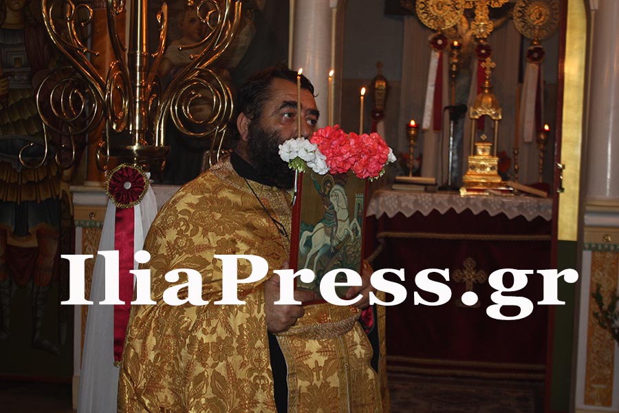 Την παραμονή το βράδυ, στην ιερά Μονή Αγίου Γεωργίου στο Λαμπέτι Πύργου, ετελέσθει πανηγυρικός Εσπερινός μετ΄ αρτοκλασίας, στην οποίαν προέστη ο Θεοφιλέστατος Επίσκοπος Ωλένης κ. ΑΘΑΝΑΣΙΟΣ.
