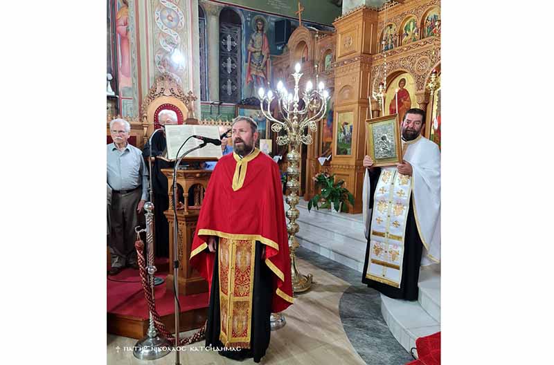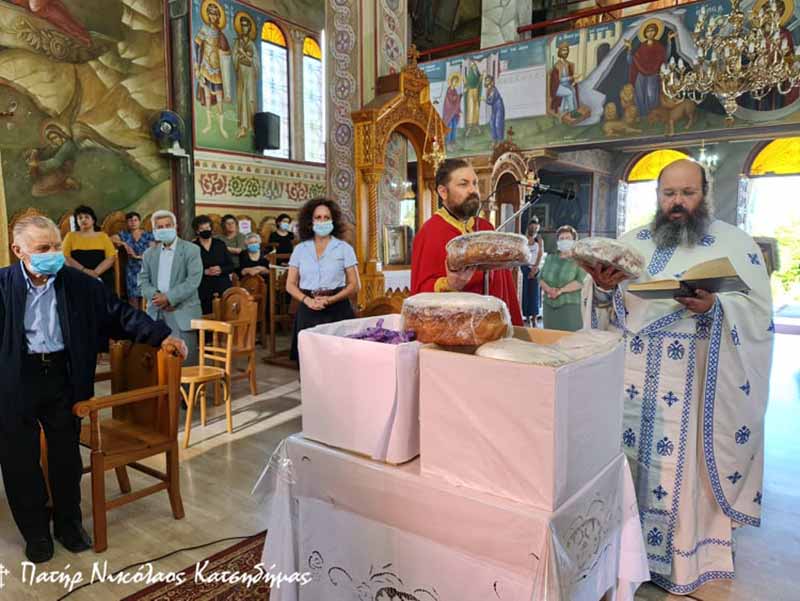 Την παραμονή της εορτής τελέσθηκε ο Μέγας Πανηγυρικός Αρχιερατικός Εσπερινός μετ’ αρτοκλασιών και θείου κηρύγματος υπό του Θεοφιλεστάτου Επισκόπου Ωλένης κ.κ. Αθανασίου, πλαισιωμένου υπό των Αιδεσ. π. Γρηγορίου Πάπαρη, π. Αθανασίου Στεργιοπούλου, π. Νικολάου Κατσηδήμα, π. Νεκταρίου Συμεωνίδη, π. Παναγιώτου Κλουκίνα και του οικείου Εφημερίου π. Παντελέημονος Παπαηλιού. Ανήμερα της εορτής τελέσθηκε η Πανηγυρική Θεία Λειτουργία μετ’ αρτοκλασιών υπό των Αιδεσ. π. Παναγιώτου Κλουκίνα και π. Παντελήμονος Παπαηλιού. Τους Ιερούς Ύμνους απέδωσε εξαίσια και κατανυκτικά, χορωδία αποτελούμενη από καλλικέλαδους Ιεροψάλτες και μαθητές της Σχολής Βυζαντινής Μουσικής της Ιεράς Μητροπόλεώς μας υπό την διεύθυνση του κ. Γεωργίου Παπαηλιού, Καθηγητού Βυζαντινής Μουσικής στην ως άνω Σχολή.
