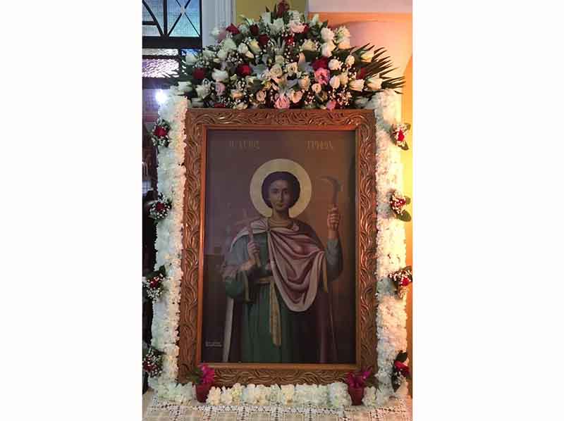 Ανήμερα της εορτής προσήλθε ο Σεβασμιώτατος Μητροπολίτης μας κ.κ. Γερμανός, όπου χοροστάτησε στον Όρθρο και τέλεσε την Αρχιερατική Πανηγυρική Θεία Λειτουργία μετ’ αρτοκλασιών και Θείου Κηρύγματος, συμπαραστατούμενος από καθώς και από τους Αιδεσιμολογιοτάτους π. Παναγιώτη Γιατρά, π. Κωνσταντίνο Βαβίλη, π. Βλάσιο Μπενέτο και τον Προϊστάμενο του Ιερού Ναού π. Κωνσταντίνο Συριόπουλο. Κατά το διήμερο των θρησκευτικών εκδηλώσεων, οι ευλαβείς και φιλακόλουθοι Χριστιανοί της ενορίας αλλά και οι φιλέορτοι κάτοικοι της Αμαλιάδος, προσήλθαν ευλαβικά προκειμένου να προσκυνήσουν την ιερή εικόνα και να λάβουν την χάρη του εορταζομένου Αγίου, τηρώντας μάλιστα υποδειγματικά όπως ορίζει άλλωστε και η σχετική νομοθεσία, τα υγειονομικά μέτρα προστασίας για την Δημόσια υγεία, προς αποφυγή της πανδημίας που επέφερε ο Covid-19, με την επαινετή μέριμνα και άοκνη φροντίδα του Εκκλησιαστικού Συμβουλίου της φίλεργης αυτής ενορίας, η οποία διακρίνεται στον Λειτουργικό, Πνευματικό αλλά και Φιλανθρωπικό τομέα.