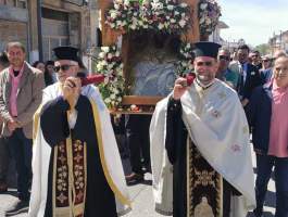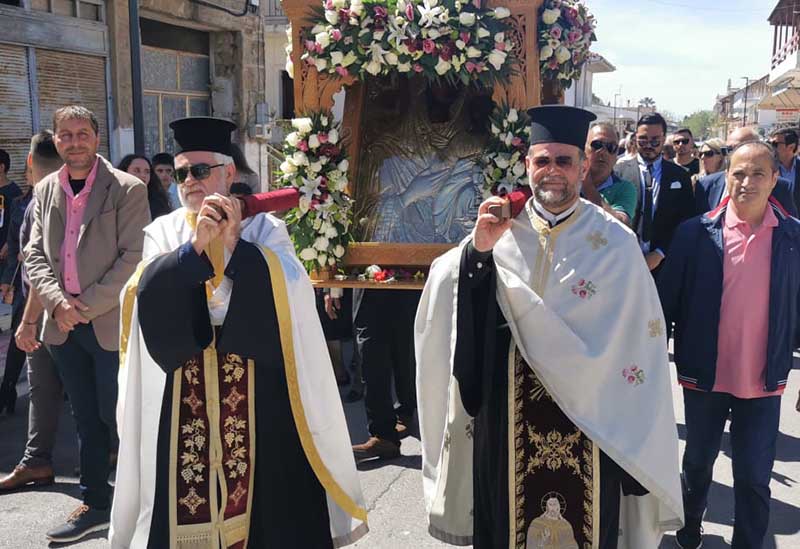 Την Αναστάσιμη Πανηγυρική Θεία Λειτουργία, πλαισιούμενος υπό του Ιεροκήρυκος της Ιεράς Μητροπόλεώς μας Πανοσιολογιοτάτου Αρχιμανδρίτου π. Φιλαρέτου Σπανοπούλου και των Αιδεσ. π. Χαραλάμπους Δέρβου, π. Ηλία Κουμπαρούλη, π. Κωνσταντίνου Θεοδωρόπουλου και π. Γεωργίου Χαρδαβέλα, τέλεσε ο Σεβασμιώτατος Μητροπολίτης μας κ. Γερμανός, ο οποίος παράλληλα κήρυξε επίκαιρα και εποικοδομητικά τον Θείο Λόγο. Κατά την λιτάνευση της Ιερής εικόνας προέστη ο Θεοφιλέστατος Επίσκοπος Ωλένης κ. Αθανάσιος, η οποία μεταφέρθηκε στον νεοαναγειρόμενο Ιερό Ναό των Αγίων Ισαποστόλων Κωνσταντίνου και Ελένης, με την συνοδεία των Φιλαρμονικών Γαστούνης και Βαρθολομιού, παρουσία των Πολιτικών αρχών, με επικεφαλής τον αξιότιμο Δήμαρχο Πηνειού κ. Ανδρέα Μαρίνο, τους Βουλευτές κ. Ανδρέα Νικολακόπουλο, κ. Θεοδώρα-Διονυσία Αυγερινοπούλου, κ. Μιχάλη Κατρίνη και κ. Διονύσιο Καλαματιανό, καθώς επίσης και πλήθους ευλαβών και φιλεόρτων Χριστιανών της πόλης της Γαστούνης και της ευρύτερης περιοχής του Δήμου Πηνειού.