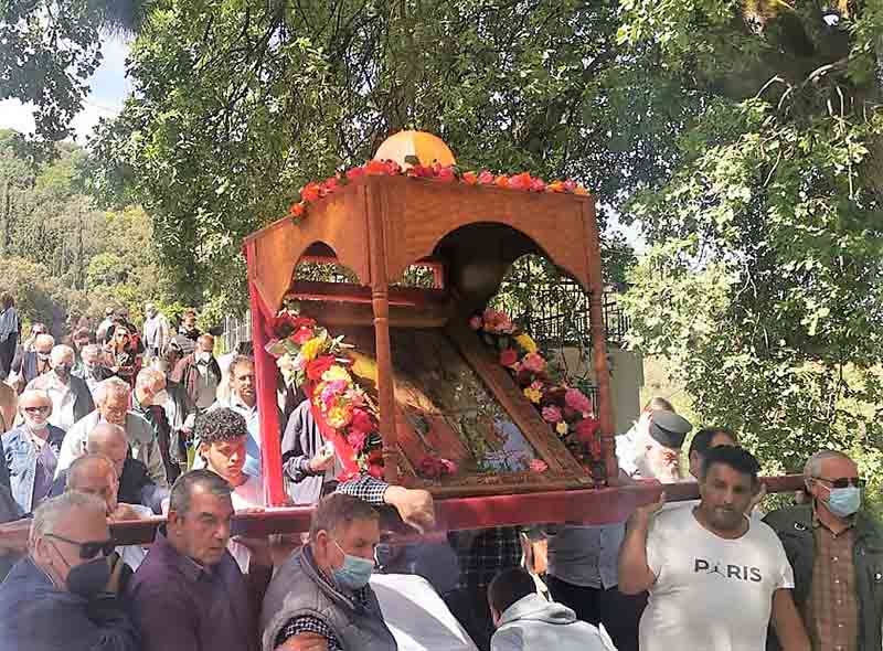 Την παραμονή της εορτής Δευτέρα 9 Μαΐου, τελέσθη ο υπαίθριος Μέγας Πανηγυρικός Αρχιερατικός Εσπερινός μετ’ αρτοκλασιών και Θείου Κηρύγματος υπό του Θεοφιλεστάτου Επισκόπου Ωλένης κ. Αθανασίου, ενώ το μεσονύκτιο στον καθολικό της Μονής ακολούθησε Ιερά Αγρυπνία. Την κυρία ημέρα της εορτής Τρίτη 10 Μαΐου, τελέσθηκε η ακολουθία του Όρθρου και η υπαίθρια Δισαρχιερατική Πανηγυρική Θεία Λειτουργία, υπό του Σεβασμιωτάτου Μητροπολίτου μας κ. Γερμανού ο οποίος κήρυξε και τον Θείον Λόγον, συμπαραστατούμενος υπό του Θεοφιλεστάτου Επισκόπου Ωλένης κ. Αθανασίου και άλλων Κληρικών. Μετά το πέρας αυτής πραγματοποιήθηκε η λιτάνευση της χαριτόβρυτης και θαυματουργής εικόνας, ενώ εψάλλη και η κατά παράδοση αρτοκλασία στις βρύσες της Ιεράς Μονής. Στο τέλος ο Σεπτός μας Ποιμενάρχης κ. Γερμανός, ευχαρίστησε για την τιμητική τους παρουσία τους εκπροσώπους των Πολιτικών και Στρατιωτικών αρχών καθώς επίσης και των Σωμάτων ασφαλείας από την Αχαΐα και την Ηλεία, αλλά και το πλήθος των πιστών, για την υποδειγματική συμμετοχή τους στις λατρευτικές αυτές εκδηλώσεις. Προσφέρθηκε καφές και γεύμα, στο παραδοσιακό αρχονταρίκι της Ιεράς Μονής. Οι θρησκευτικές εκδηλώσεις έλαβαν τέλος με τον μεθέορτο Εσπερινό και την Ιερά Παράκληση, χοροστατούντος και ομιλούντος του Θεοφιλεστάτου Επισκόπου Ωλένης κ. Αθανασίου. Τα εόρτια υμνογραφικά μελωδήματα κατά τις λατρευτικές εκδηλώσεις, απέδωσε θαυμάσια χορωδία Ιεροψαλτών της ευρύτερης περιοχής, υπό την διεύθυνση του Πρωτοψάλτου της Ιεράς Μονής κ. Δημητρίου Θανόπουλου, καθηγητού της Σχολής Βυζαντινής Μουσικής της Ιεράς Μητροπόλεώς μας.