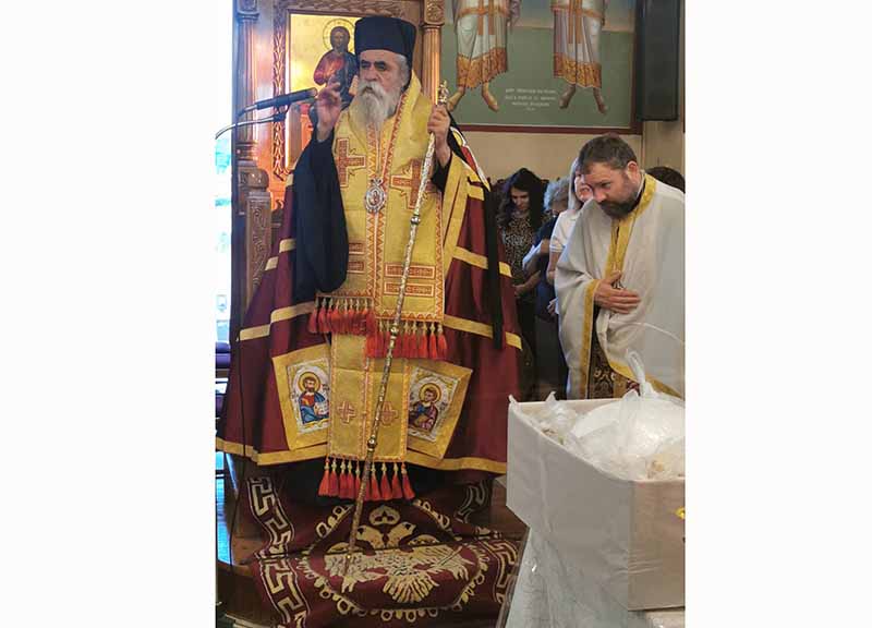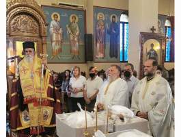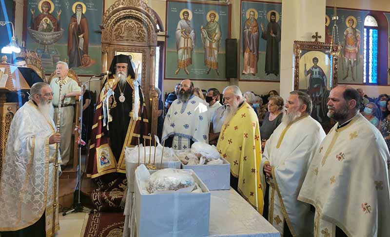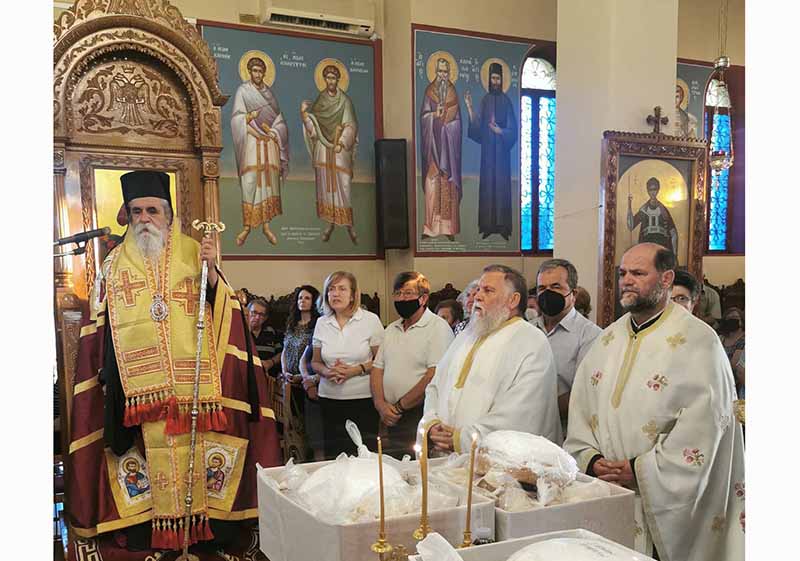 Μετά την ευλόγηση των άρτων ο Θεοφιλέστατος κήρυξε τον Θείον Λόγον, αναφερόμενος στην σημασία της εορτής που είναι μία από τις σπουδαιότερες της Εκκλησίας μας, τονίζοντας μεταξύ άλλων ότι είναι η σφραγίδα της εορταστικής αυτής της Εκκλησιαστικής περιόδου, διότι μας παρουσιάζει τους καρπούς του Αγίου Πνεύματος τους Αγίους Πάντες, τα κοσμήματα αλλά και το καύχημα της Ορθόδοξης Εκκλησίας μας. Την κυρία ημέρα της εορτής Κυριακή 19 Ιουνίου, χοροστάτησε στον Όρθρο και ιερούργησε το μυστήριο της Θείας Ευχαριστίας, ο Σεβασμιώτατος Μητροπολίτης μας κ.κ. Γερμανός, ο οποίος κήρυξε και τον Θείον Λόγον, πλαισιούμενος από τους ευλαβείς Ιερείς π. Ηλία Παπαγγελή π. Κωνσταντίνο Παπαδημητρίου και π. Ρωμανό Καββαθά. Τα Ιερά ψαλσίματα απέδωσαν υπέροχα οι καλλικέλαδοι Ιεροψάλτες του Ναού Μαρίνος Ηλιόπουλος και Μιχαήλ Ηλιόπουλος.