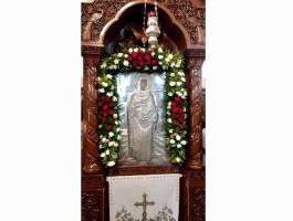 Οι Θρησκευτικές εκδηλώσεις με τις ευλογίες του Σεπτού μας Ποιμενάρχου κ.κ. Γερμανού, έλαβαν χώρα στον ομώνυμο και περικαλλή Ιερό Ναό της εορταζομένης Αγίας και άρχισαν την παραμονή της εορτής, με την τέλεση του Πανηγυρικού Αρχιερατικού Εσπερινού μετ’ αρτοκλασιών και Θείου Κηρύγματος υπό του Θεοφιλεστάτου Επισκόπου Ωλένης κ.κ. Αθανασίου, ο οποίος πλαισιωνόταν από τους Αιδεσ. Παντελεήμων Παπαηλιού π. Χαράλαμπο Αθανασόπουλο και π. Βασίλειο Λαγκαδινό.