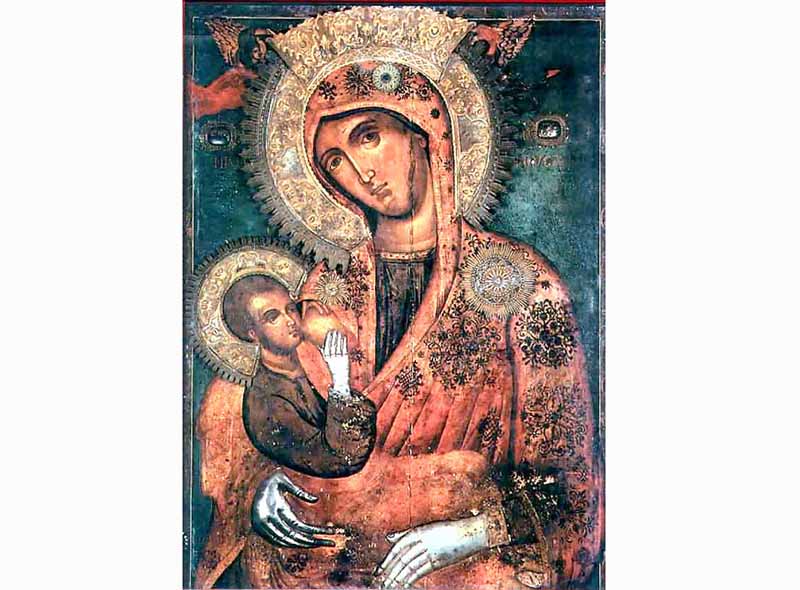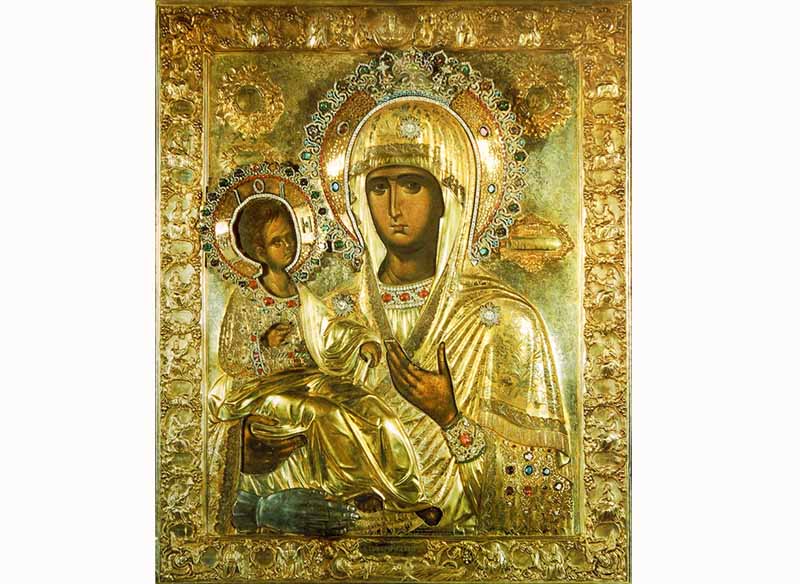 Η Ιερά καί θαυμάσια εικόνα της Θεομήτορος είναι παλαιότατης τέχνης παλαιολογείου εποχής και προφανώς μπορεί να καταταχθεί στη λεγόμενη σχολή του «Γιαροσλάβ». Ήταν τοποθετημένη στόν αρσανά της Μονής ο οποίος καταστράφηκε το 1892 κατά μήνα Δεκέμβριο, από τους αποσπασθέντες βράχους της Σαμαρείας σε νυκτερινή ώρα.