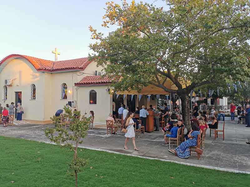 Την κυριώνυμο ημέρα της εορτής την Πανηγυρική Θεία Λειτουργία μετ’ αρτοκλασίων, τέλεσε ο Αιδεσιμολογιότατος π. Κωνσταντίνος Παπαδημητρίου, ενώ το απόγευμα πραγματοποιήθηκε η λιτάνευση της Ιερής εικόνας στον Παραλιακό οικισμό. Τους υπέροχους και κατανυκτικούς ύμνους της κορυφαίας εορτής του Θεομητορικού κύκλου, απέδωσαν θαυμάσια οι Πρωτοψάλτες κ. Τρύφωνας Καββαθάς και κ. Γεώργιος Παπαγεωργίου, τέρποντας ευφρόσυνα του εκκλησιαζομένους.