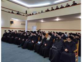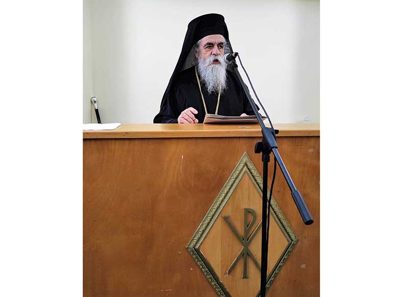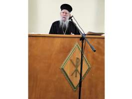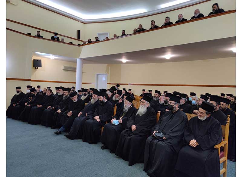 Μετά το κέρασμα από το Εκκλησιαστικό Συμβούλιο του Ιερού Ναού, ακολούθησε στην παρακείμενη αίθουσα της Αποστολικής Διακονίας, η Ιερατική Σύναξη κατά την οποία ο πολιός μας Ιεράρχης πρώην Ηλείας κ.κ. Γερμανός ευχόμενος για μία ακόμη φορά τα δέοντα στον νέο μας Ποιμενάρχη, απηύθυνε πνευματικές νουθεσίες και συμβουλές με τον εύληπτο, πρακτικό και βιωματικό λόγο του, μέσα από την μακρόχρονη, ευδόκιμη αλλά και Θεάρεστη ποιμαντορία του, συνιστώντας τον σεβασμό και την υπακοή των Κληρικών