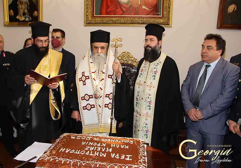 Στο Μητροπολιτικό Μέγαρο Πύργου, για πρώτη φορά ως Μητροπολίτης Ηλείας και Ωλένης, παρουσία του Ιερού Κλήρου, των Πολιτικών, Πολιτειακών, Στρατιωτικών Αρχών και των Σωμάτων Ασφαλείας, καθώς επίσης εκπροσώπων κοινωνικών Συλλόγων και πνευματικών φορέων, συνεργατών της τοπικής μας Εκκλησίας, αλλά και πλήθους κόσμου, αφού ευχήθηκε πατρικά τα δέοντα για τον νέο ενιαυτό της χρηστότητος του Κυρίου, παρουσιάζοντας παράλληλα τον Κοινωνικό και Οικονομικό απολογισμό της Ιεράς Μητροπόλεως για το απερχόμενο έτος 2022, ευλόγησε κατά το έθος και μοίρασε την Αγιοβασιλόπιτα, ευχόμενος στον καθένα ξεχωριστά καλή και ευλογημένη χρονιά. Επίκαιρους ύμνους έψαλαν θαυμάσια μέλη του Συλλόγου Ιεροψαλτών Ηλείας «Ιωάννης ο Δαμασκηνός», υπό την διεύθυνση του νεοκλεγέντος Προέδρου κ. Δημητρίου Θανόπουλου. Το φλουρί έτυχε στη δίδα Ιωάννα .Αναστ. Χονδρογιάννη Φοιτήτρια του Παιδαγωγικού Τμήματος του Δημοκρίτειου Πανεπιστημίου Θράκης , στην οποία ο Σεβασμιώτατος, προσέφερε χρυσό επιστήθιο Σταυρό.