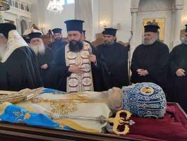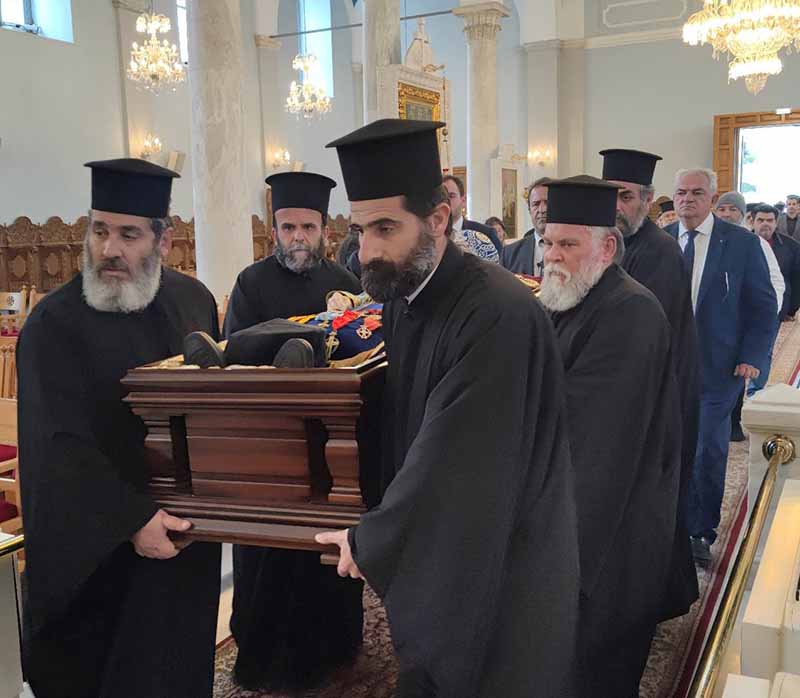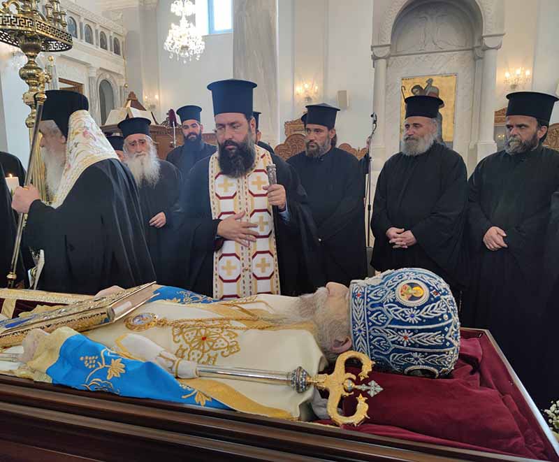 Ο Μητροπολιτικός Ναός θα παραμείνη ανοικτός καθ' όλην την διάρκεια της ημέρας και της νυκτός και θα τελούνται ακολουθίες και αναγνώσματα. Σήμερα το απόγευμα και ώρα 5 μ.μ. θα τελεσθή Αρχιερατικός Εσπερινός χοροστατούντος του Σεβ. Μητροπολίτου Ηλείας κ. ΑΘΑΝΑΣΙΟΥ. Ώρα 11 μ.μ. θα τελεσθή ο Όρθρος και νυκτερινή Θεία Λειτουργία. Αύριο Πέμπτη και ώρα 7 έως 10.30 π.μ. θα τελεσθή ο Όρθρος και Αρχιερατική θεία Λειτουργία υπό του Σεβασμιωτάτου Μητροπολίτου μας κ. ΑΘΑΝΑΣΙΟΥ. Ώρα 1 μ.μ. θα τελεσθή η Εξόδιος ακολουθία υπό του Μακαριωτάτου Αρχιεπισκόπου Αθηνών και πάσης Ελλάδος κ.κ. ΙΕΡΩΝΥΜΟΥ με την συμμετοχήν πλειάδος Αρχιερέων. Μετά το πέρας της Εξοδίου ακολουθίας θα γίνει ο ενταφιασμός της σορού εις Α' Κοιμητήριο του Πύργου, παραπλεύρως του Μακαριστού προκατόχου του αλλά και πνευματικού του Πατρός Γερμανού (Γκούμα).