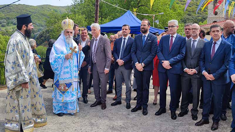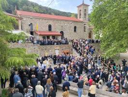 Την κυριώνυμο ημέρα της εορτής Τετάρτη 10 Μαΐου, τελέσθηκε η ακολουθία του Αναστάσιμου Όρθρου και η υπαίθρια Αρχιερατική Πανηγυρική Θεία Λειτουργία προεξάρχοντος του Σεβασμιωτάτου Μητροπολίτου μας κ.κ. Αθανασίου, με συλλειτουργούς τον Πρωτοσύγκελο της Ιεράς Μητροπόλεως Πανοσιολογιότατο Αρχιμανδρίτη π. Φιλάρετο Σπανόπουλο, τον Πανοσιολογιότατο Αρχιμανδρίτη και Ιεροκήρυκα π. Χριστόφορο Κωλέττη, τον Αιδεσιμολογιότατο π. Ιωάννη Πανουτσακόπουλο και τον Ιερολογιότατο Διάκονο π. Βασίλειο Σμέρο. Ακολούθησε η Λιτάνευση της χαριτόβρυτης και θαυματουργής εικόνας του Αγίου Νικολάου και η Αρτοκλασία στις βρύσες του Προσκυνήματος, όπου στο τέλος αυτής ο Σεπτός μας Ποιμενάρχης ευχαρίστησε ιδιαίτερα τον Περιφερειάρχη Δυτικής Ελλάδος κ. Νεκτάριο Φαρμάκη, τους Βουλευτές και Δημάρχους, καθώς επίσης τους λοιπούς εκπροσώπους των Πολιτικών και Στρατιωτικών αρχών και των Σωμάτων ασφαλείας της περιοχής, την Διοικούσα επιτροπή του Ιερού Προσκυνήματος και τέλος τον φιλάγιο λαό του Θεού, για την πάνδημη και υποδειγματική τους παρουσία, στις προαναφερόμενες Θρησκευτικές εκδηλώσεις. Ακολούθησε γεύμα στην Τράπεζα του Ιερού Προσκυνήματος. Τους Εκκλησιαστικούς Ύμνους κατά την διάρκεια των Ιερών ακολουθιών απέδωσε θαυμάσια, χορωδία Ιεροψαλτών της περιοχής Βουπρασίας, υπό την διεύθυνση του Πρωτοψάλτου του Προσκυνήματος κ. Δημητρίου Θανόπουλου, Καθηγητού της Σχολής Βυζαντινής Μουσικής της Ιεράς Μητροπόλεώς μας.