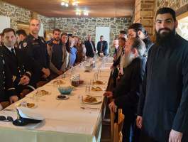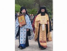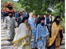 Την παραμονή της εορτής Tρίτη 9 Μαΐου, τελέσθηκε στην υπαίθρια πανηγυρίστρα ο Μέγας Αρχιερατικός Πανηγυρικός Εσπερινός, μετ΄ αρτοκλασιών χοροστατούντος του Σεβασμιωτάτου Μητροπολίτου μας κ.κ. Αθανασίου ο οποίος κήρυξε εποικοδομητικά και επίκαιρα τον Θείον Λόγον, συμπαραστατούμενος υπό του Πανοσιολογιοτάτου Αρχιμανδρίτου π. Φιλαρέτου Σπανοπούλου Πρωτοσυγκέλου της Ιεράς Μητροπόλεως, του Πανοσιολογιοτάτου Αρχιμανδρίτου π. Κυρίλλου Χατζηχαραλάμπους, καθώς επίσης των Αιδεσιμολογιοτάτων π. Ανδρέου Γεωργακοπούλου, π. Ιωάννου Πανουτσακοπούλου και του Ιερολογιοτάτου Διακόνου π. Βασιλείου Σμέρου, ενώ στην συνεχεία στον Ιερό Ναό του Προσκυνήματος, ακολούθησε ολονύκτιος Ιερά αγρυπνία.