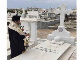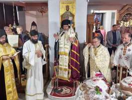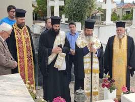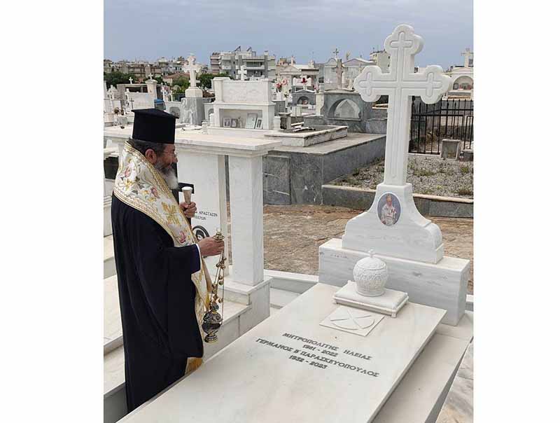 με του οποίου τις ευλογίες το Σάββατο 20 Μαΐου το απόγευμα προέστη του Αναστάσιμου Πανηγυρικού Εσπερινού εις τον εορτάζοντα νεοανεγειρόμενο Ιερό Ναό Αγίων Κων/νου και Ελένης Γαστούνης, πλαισιούμενος υπό του Ιερομονάχου π. Χρυσάνθου Χριστοφή και των Αιδεσ. π. Χαραλάμπους Δέρβου, π. Ανδρέα Καρνέζου, π. Κωνσταντίνου Θεοδωρόπουλου, π. Νικολάου Κατσηδήμα, π. Γεωργίου Χαρδαβέλα καθώς επίσης και του οικείου εφημερίου π. Ηλία Κουμπαρούλη. Την Κυριακή προέστη της Αναστάσιμης Πανηγυρικής Θείας Λειτουργίας εις τον εορτάζοντα νεοανεγειρόμενο Ι. Ν. Αγ. Κων/νου και Ελένης Πύργου επί της οδού Αλφειού, συμπαραστατούμενος υπό του Αιδεσιμολογιοτάτου π. Παντελεήμονος Παπαηλιού και του Ιερολογιοτάτου Διακόνου π. Βασιλείου Σμέρου. Ακολούθως μετέβη εις το Α΄ Κοιμητήριο Πύργου και τέλεσε Τρισάγιο υπέρ αναπαύσεως της ψυχής του Μακαριστού Ποιμενάρχου μας κυρού Γερμανού του Β’, ως ένδειξη υιϊκής αγάπης και σεβασμού. Ο Θεοφιλέστατος ορθοτομώντας με θεολογική ενάργεια και πάντα εποικοδομητικά τον Θείον Λόγον εις τους προαναφερόμενους Ιερούς Ναούς, αφού εξέφρασε τις θερμές του ευχαριστίες εις τον Μακαριώτατο Αρχιεπίσκοπο Κύπρο κ.κ. Γεώργιο για την κανονική άδεια καθώς επίσης και εις τον Σεπτό μας Ποιμενάρχη κ.κ. Αθανάσιο για την ευλογητή φιλοξενία του, ανέφερε μεταξύ πολλών άλλων ότι: «ο εκ γενετής Τυφλός της Ευαγγελικής Περικοπής, είδε την δόξα στο πρόσωπο του Θεανθρώπου, ενώ ο Απόστολος Παύλος της Αποστολικής Περικοπής, έζησε την προσωπική του Πεντηκοστή στο δρόμο για την Δαμασκό. Ο Μέγας Κωνσταντίνος ο Ισαπόστολος έζησε το θαύμα της φανέρωσης του Τιμίου Σταυρού, αφού η Μητέρα του η Αγία Ελένη με πίστη και ταπείνωση, επισκέφθηκε την Αγία Γη αναζητώντας τον Τίμιο και Ζωοποιό Σταυρό του Κυρίου μας. Επιστρέφοντας δε από τα Ιεροσόλυμα πέρασε και από την Κύπρο, όπου άφησε τεμάχια του Τιμίου Σταυρού και οικοδόμησε Ιερούς Ναούς και την Ιερά Μονή Σταυροβουνίου».