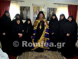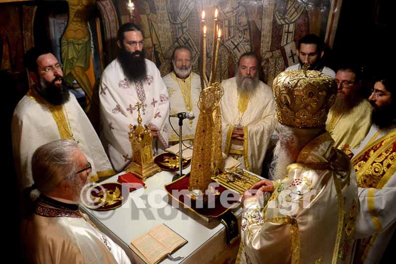 Κατά τη διάρκεια της Θείας Λειτουργίας ο Σεβασμιώτατος τέλεσε τη ρασοευχή στον νέο δόκιμο μοναχό Χαράλαμπο Χυνοφώτη.