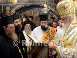 Μετά το πέρας της Θείας Λειτουργίας ο Σεβασμιώτατος προέβει στην ενθρόνιση του Νέου Ηγουμένου της Ιεράς Μονής Παναγίας Χρυσοπηγής Άνω Δίβρης Αρχιμ. Ιωακείμ Μιχαλόπουλου.