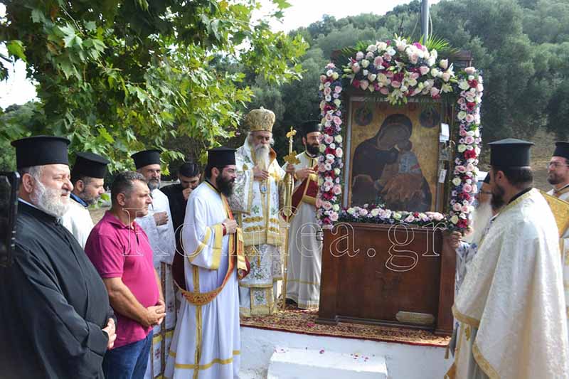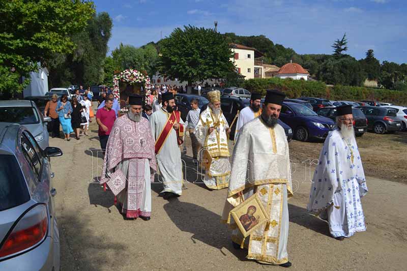 Μετά το πέρας της θείας λειτουργίας τελέστηκε λιτανεία της Ιεράς εικόνας της Θεοτόκου η οποία αναγράφει "Η Κυρία Βλαχαίρνα"