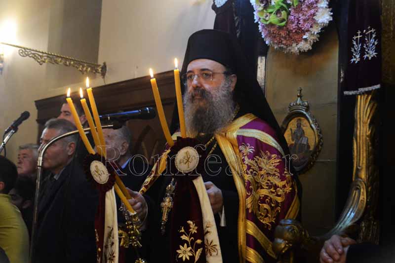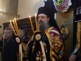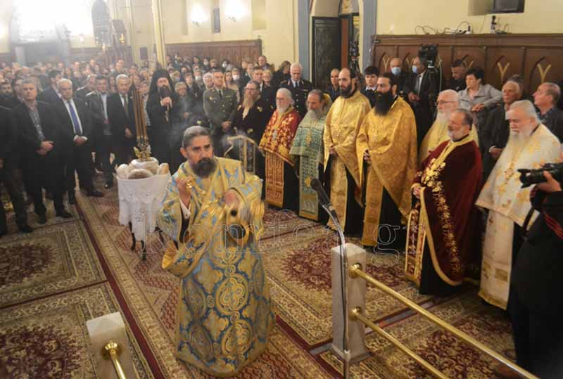 Οι λατρευτικές εκδηλώσεις προς τιμήν του πολιούχου της πόλεως ξεκίνησαν με τον μέγα πολυαρχιερατικό πανηγυρικό εσπερινό στον Ιερό Ναό της Αγίας Κυριακής.