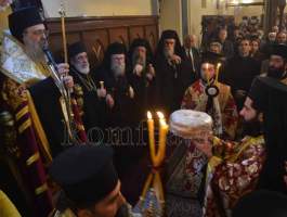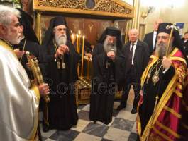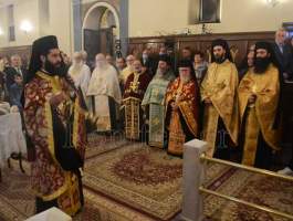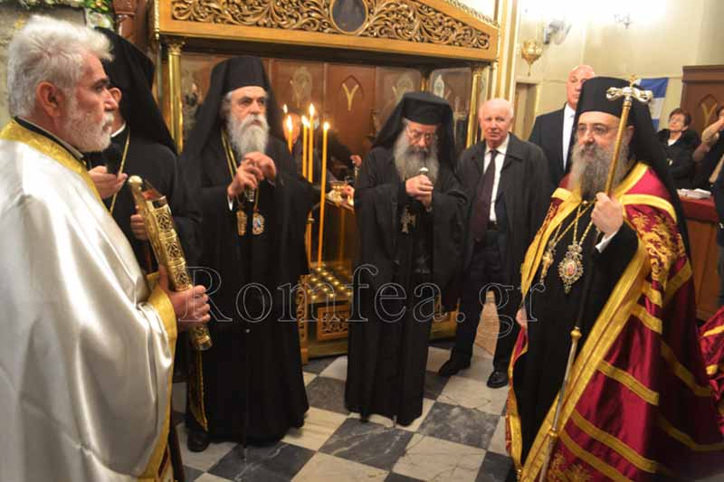 Του εσπερινού χοροστάτησε ο Σεβασμιώτατος Μητροπολίτης Πατρών κ. Χρυσόστομος, συγχοροστατούντων των Σεβασμιωτάτων Μητροπολιτών Σιδηροκάστρου κ. Μακαρίου, Μπουκόμπας και Δυτικής Τανζανίας κ. Χρυσοστόμου, του Θεοφιλεστάτου επισκόπου Ανδρούσης κ. Κωνσταντίου, και του οικείου Μητροπολίτου Ηλείας και Ωλένης κ. Αθανασίου του Β'.