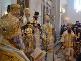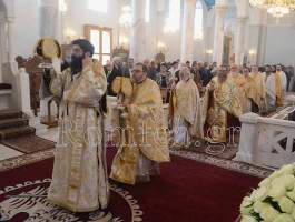 Στην Θεία Λειτουργία προεξήρχε ο Σεβ. Μητροπολίτης Κορίνθου κ. Διονύσιος και συλλειτούργησαν οι Σεβ. Μητροπολίτες, Κεφαλληνίας κ. Δημήτριος, Μάνης κ. Χρυσόστομος, ο Θεοφιλέστατος Επίσκοπος Λακεδαιμονίας κ. Θεόφιλος, βοηθός Επίσκοπος του Σεβ. Μητροπολίτου Μονεμβασίας και Σπάρτης κ. Ευσταθίου, και ο οικείος Μητροπολίτης Ηλείας και Ωλένης κ. Αθανάσιος ο Β'.