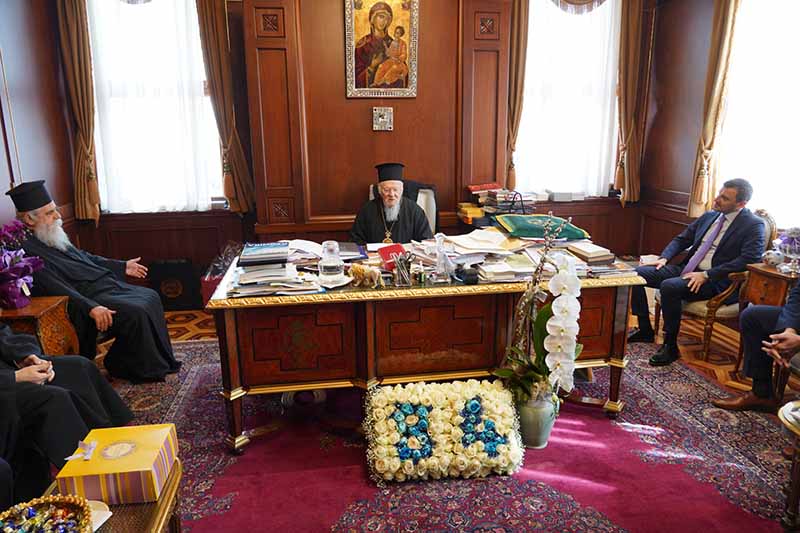 Στη συνέχεια ο Παναγιώτατος είχε σύντομη κατ’ ιδίαν συνάντηση με τον Εξοχ. κ. Υφυπουργό, τον οποίο συνεχάρη για την πρόσφατη ανάληψη των πολυεύθυνων καθηκόντων που του εμπιστεύθηκε ο Εξοχ. Πρωθυπουργός της Ελλάδος.