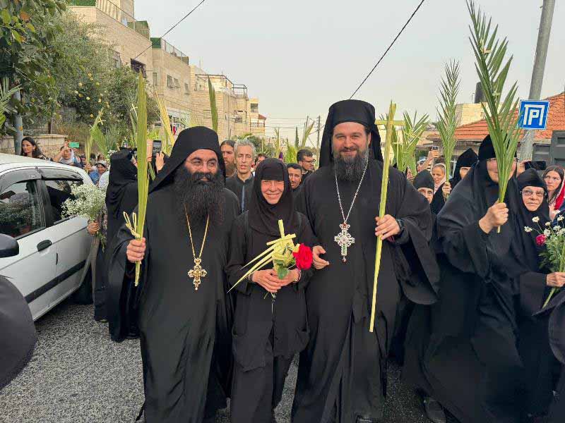 καί ἀνέθεσεν εἰς τόν Σεβασμιώτατον Μητροπολίτην Καπιτωλιάδος κ. Ἡσύχιον νά προεξάρξῃ τῆς λιτανείας ἐν κλάδοις βαΐων καί ἐν ψαλμῳδίᾳ τοῦ «τήν κοινήν Ανάστασιν πρό τοῦ Σοῦ πάθους πιστούμενος», ἀπό τῆς Βηθανίας διά τῆς Ἱερᾶς Μονῆς Ἀναλήψεως, τῆς Γεθσημανῆς, τοῦ Ἁγίου Στεφάνου καί ἐκ τῆς Πύλης τῶν Λεόντων ἕως τῆς Ἱερᾶς Μονῆς τῶν Ἁγίων Θεοπατόρων εἰς ἀνάμνησιν τῆς θριαμβευτικῆς εἰσόδου τοῦ Κυρίου εἰς Ἱεροσόλυμα, ὅτε οἱ παῖδες τῶν Ἑβραίων ὑπεδέχθησαν Αὐτόν ψάλλοντες «ὠσαννά τῷ Υἱῷ Δαυΐδ».