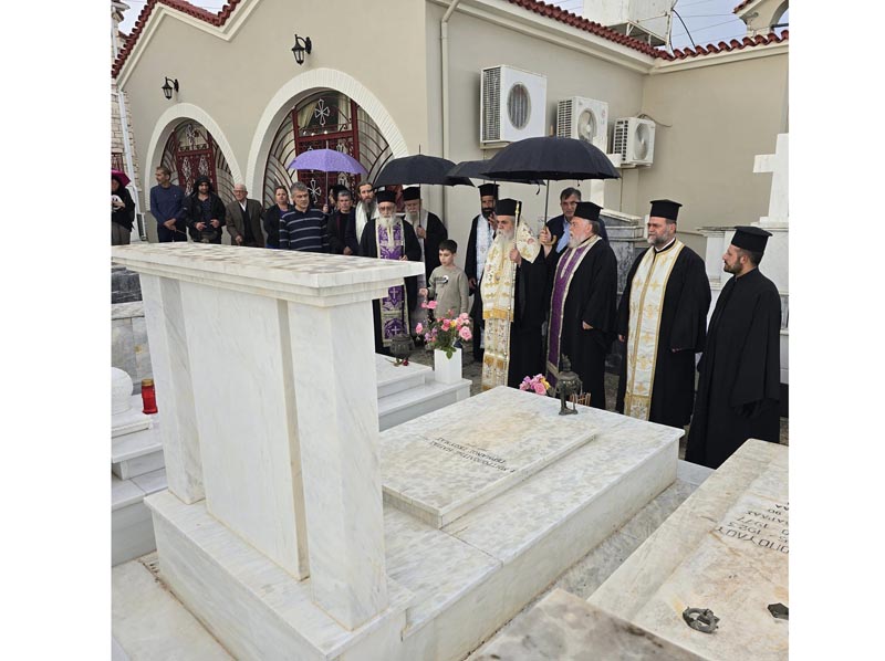 τέλεσε Αρχιερατικό Τρισάγιο στο Α' Κοιμητήριο, για τους εορτάζοντες πλέον στην θριαμβεύουσα Εκκλησία, μακαριστούς και αοιδίμους προκατόχους του Αρχιερείς κυρό Γερμανό Γκούμα και κυρό Γερμανό Παρασκευόπουλο, παρουσία συγγενών του μακαριστού Ποιμενάρχου μας κυρού Γερμανού του Β'. Ακολούθησε μικρή δεξίωση από το Εκκλησιαστικό Συμβούλιο του Ι. Ν. Αγίων Πάντων στο κυλικείο του Ιερού Ναού. Των αειμνήστων Ιεραρχών ΑΙΩΝΙΑ Η ΜΝΗΜΗ!