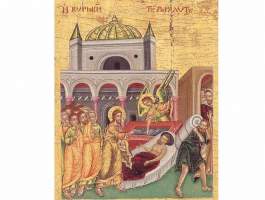 Τω καιρώ εκείνω, ανέβη ο Ιησούς εις Ιεροσόλυμα… Ην δε τις άνθρωπος εκεί τριάκοντα και οκτώ έτη έχων εν τη ασθενεία. Τούτον ιδών ο Ιησούς κατακείμενον ,και γνούς ότι πολύν ήδη χρόνον έχει, λέγει αυτώ: Θέλεις υγιής γενέσθαι; Απεκρίθη αυτώ ο ασθενών. Κύριε,άνθρωπον ουκ έχω ,ίνα, όταν ταραχθή το υδωρ ,βάλη με εις την κολυμβήθραν, ενώ δε έρχομαι εγώ, άλλος προ εμού καταβαίνει. Λέγει αυτώ ο Ιησούς. Έγειρε, άρον τον κράββατόν σου ,και περιπάτει. Και ευθέως εγένετο υγιής ο άνθρωπος και ήρε τον κράββατόν αυτού και περιπάτει, ήν δε Σάββατον εν εκείνη τη ημέρα… Μετά ταύτα ευρίσκει αυτόν ο Ιησούς εν τω ιερώ ,και είπεν αυτώ: Ίδε , υ γ ι ή ς γ έ γ ο ν α ς μ η κ έ τ ι Α μ ά ρ τ α ν ε, ίνα μη χείρον σοι τι γένηται…