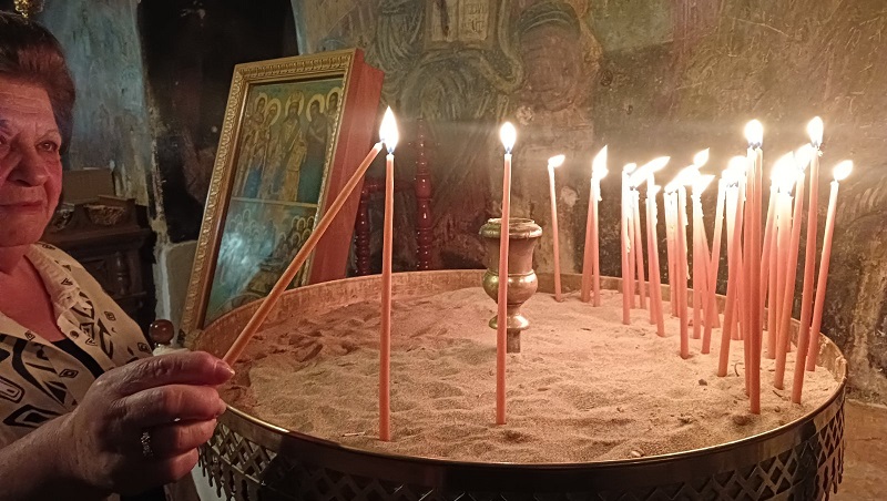 «Αν είσαι η μάρτυς Ευφημία, έλα να προσκυνήσουμε την Αγία Τριάδα. Ό,τι κάνω εγώ να κάνεις και συ.» Μπήκα στην Εκκλησία ,κάνω μια μετάνοια, λέγοντας: Εις το όνομα του Πατρός..