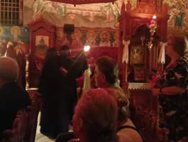 Ο Ιερός Ναός, με Παραδείσιο Φως από τις λαμπάδες και τα κεράκια των ευλαβών προσκυνητών και το ολόλαμπρο φως των καντηλιών, οι σεβαστοί Ιερείς της Ιεράς Μητροπόλεως μας, η Οσιοτάτη Καθηγουμένη της Ιεράς Μονής, Μακαρία Μοναχή με τη βαθειά πνευματικότητά της, πλαισιωμένη από τη συνοδεία της στο ψαλτήρι, το γλυκό σήμαντρο που το χτυπούσε το παπαδοπαιδάκι, η Σεπτή Εικόνα του Αγίου Παϊσίου με το Αγιασμένο τεμάχιο από την Θαυματουργή φανέλα του, μας μετέφεραν νοερά, εκεί, στον Αγιασμένο Τάφο του Αγίου, στη Σουρωτή!
