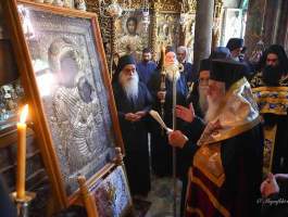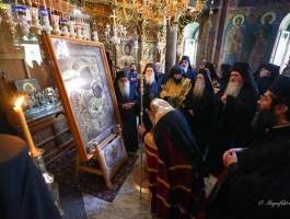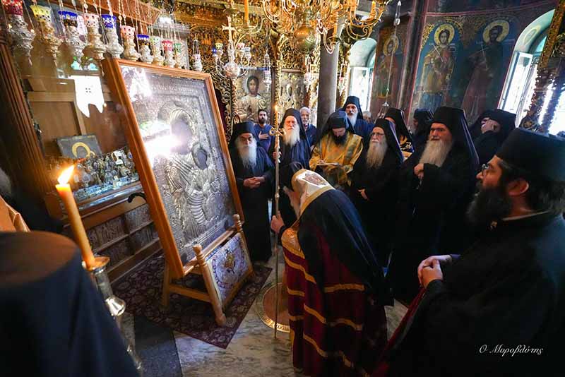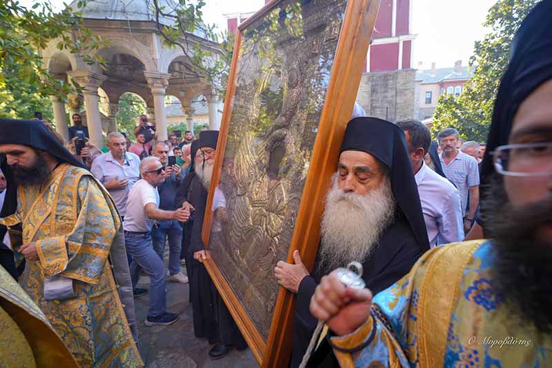 Φωτοθήκη από την πρόσφατη επίσημη προσκυνηματική επίσκεψη του Σεβασμιωτάτου Μητροπολίτου μας κκ ΑΘΑΝΑΣΙΟΥ Β΄ στην Ιερά Μονή Ιβήρων του Αγίου Όρους για την εορτή της Κοιμήσεως της Θεοτόκου (με το πάτριο ημερολόγιο 28-8-2024) και επίκεντρο των λατρευτικών εκδηλώσεων την περίπυστη και θαυματουργή εικόνα της Παναγίας της Πορταϊτίσσης.