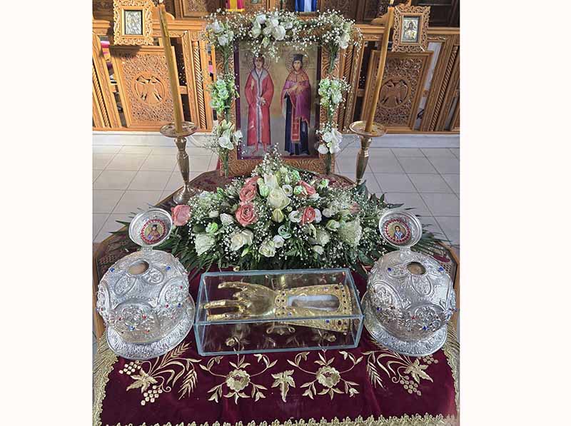 Την Παρασκευή 1η Νοεμβρίου ανήμερα της εορτής, ο Σεβασμιώτατος Μητροπολίτης μας κ.κ. Αθανάσιος, χοροστάτησε στον Όρθρο και τέλεσε την Πανηγυρική Αρχιερατική Θεία Λειτουργία μετ' αρτοκλασιών συνεπικουρούμενος από τον Πανοσιολογιότατο Αρχιμανδρίτη π. Νεκτάριο Μπακόπουλο και τους Αιδ. π. Γρηγόριο Πάπαρη, π. Γεώργιο Τούμπα, π. Αυγερινό Τσουκαλά και τον οικείο Εφημέριο π. Νικόλαο Κατσηδήμα, κηρύσσοντας με πνευματική ενάργεια και τον Θείον Λόγον, εστιάζοντας στον θαυμαστό βίο των Αγίων και τη μεγάλη αγάπη τους για τον Κύριο ημών Ιησού Χριστό και τους πάσχοντας συνανθρώπους, ευχόμενος εκ μέσης καρδίας να είναι πλούσια σε όλους η χάρις των Αγίων και ιδιαίτερα στην εορτάζουσα υγειονομική κοινότητα της Ηλείας αλλά και να κυριαρχήσει το πιο πολύτιμο αγαθό στην γη που είναι η Υγεία!