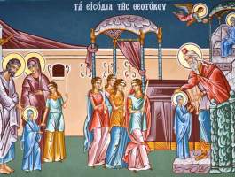 Η εορτή των Ε ι σ ο δ ί ων ,της εισόδου δηλαδή της Υπεραγίας Θεοτόκου στο Ναό των Ιεροσολύμων, στερείται βιβλικής μαρτυρίας, στηρίζεται ,όμως, στην Ιερή Παράδοση της Αγίας Εκκλησίας μας.