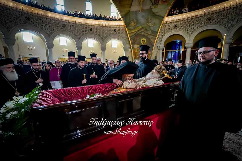 Στην εξόδιο ακολουθία προεξήρχε ο Οικουμενικός Πατριάρχης κ. Βαρθολομαίος, συμπαραστατούμενος από τον Πατριάρχη Αλεξανδρείας κ. Θεόδωρο, τον Πατριάρχη Ιεροσολύμων κ. Θεόφιλο, τον Πατριάρχη Βουλγαρίας κ. Δανιήλ, τον Αρχιεπίσκοπο Κύπρου κ. Γεώργιο, τον Αρχιεπίσκοπο Αθηνών και πάσης Ελλάδος κ. Ιερώνυμο, σύσσωμη την Ιερά Σύνοδο της Εκκλησίας της Αλβανίας και Ιεράρχες των κατά Τόπους Ορθοδόξων Εκκλησιών.