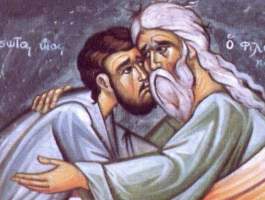 Είπε ο Κύριος την παραβολήν ταύτην. Άνθρωπος τις είχε δύο υιούς. Και είπεν ο νεώτερος αυτών τώ πατρί, πάτερ δός μοι το επιβάλον μέρος της ουσίας. και διείλεν αυτοίς τον βίον. Και μετ’ ου πολλάς ημέρας συναγαγών άπαντα ο νεώτερος υιός απεδήμησεν εις χώραν μακράν, και εκεί διεσκόρπισε την ουσίαν αυτού ζών ασώτως… Και αναστάς ήλθε προς τον πατέρα αυτού, έτι δε αυτού μακράν απέχοντος είδεν αυτόν ο πατήρ αυτού και εσπλαγχνίσθη, και δραμών επέπεσεν επι τον τράχηλον αυτού και κατεφίλησεν αυτόν. Είπε δε αυτώ ο υιός. Πάτερ, ήμαρτον εις τον ουρανόν και ενώπιον σου, και ουκέτι ειμί άξιος κληθήναι υιός σοι… Είπε δε ο πατήρ… εξενέγκατε την στολήν την πρώτην…και δότε δακτύλιον… και υποδήματα… και ενέγκαντες τον μόσχον τον σιτευτόν θύσατε…